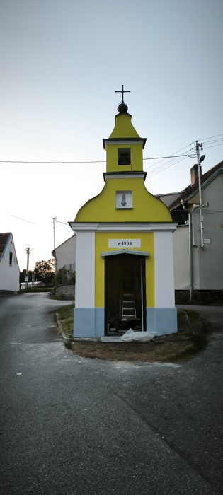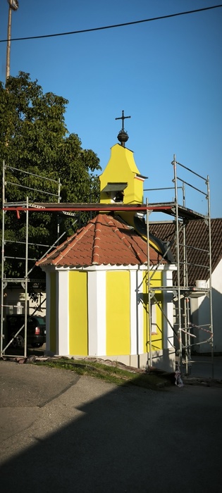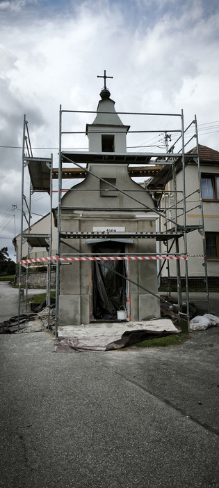 Úvod > Život v obci > Fotogalerie > Oprava kapličky na návsi v Hubenově, božích muk a skladu